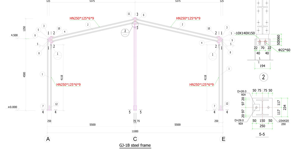 Dimensions: length 25 m x width 11 m x height 5.75 m